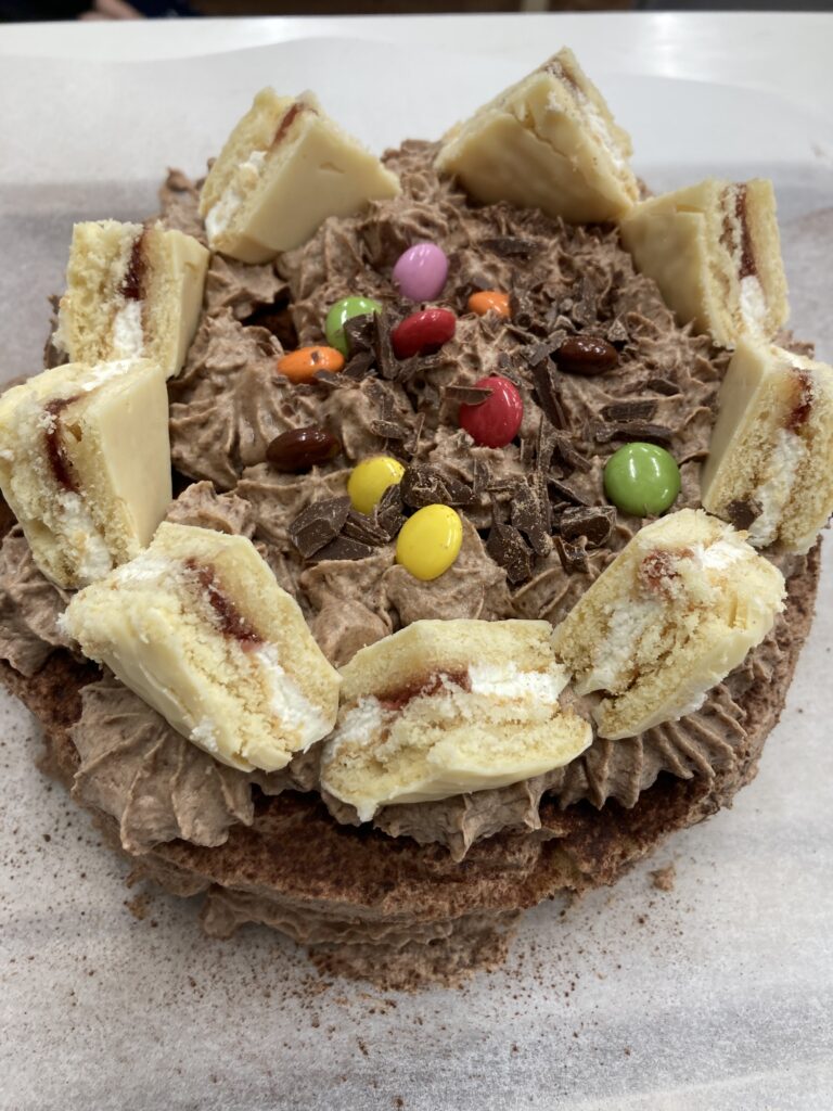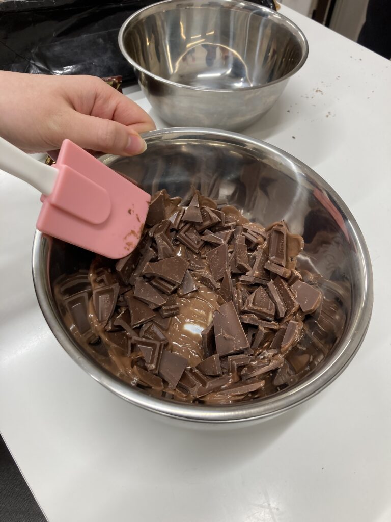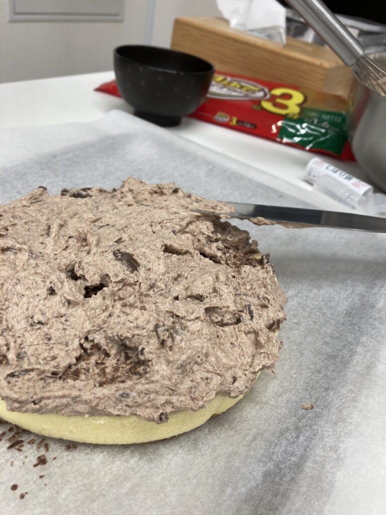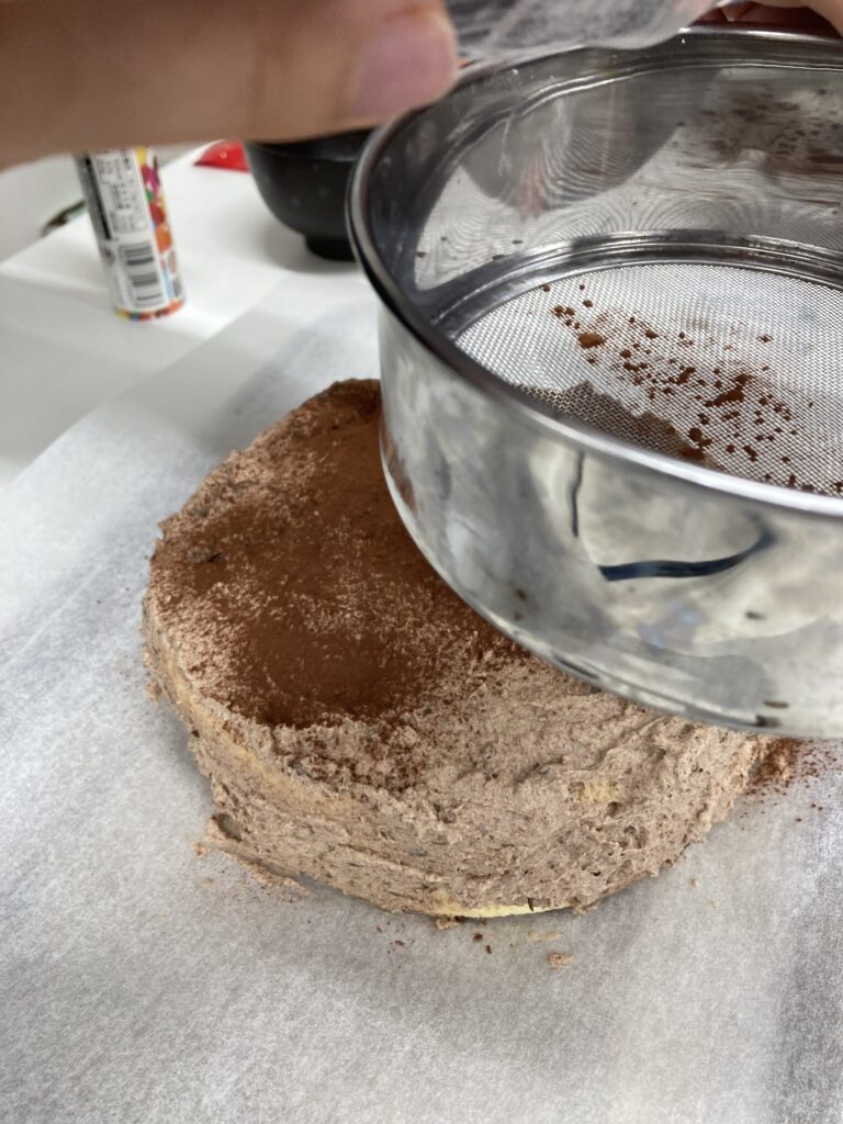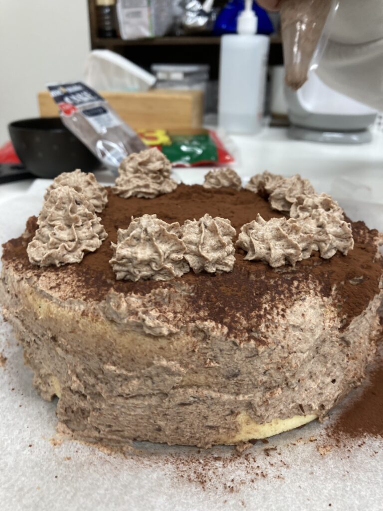 みんなで話し合い、チョコのクリスマスケーキをつくりました🎂