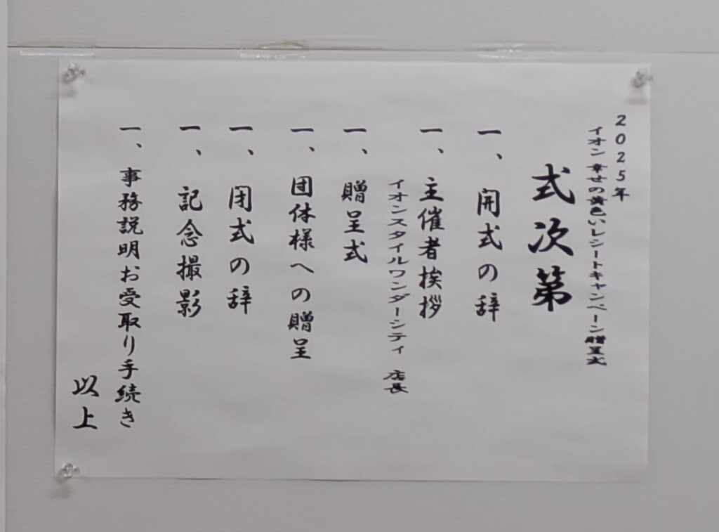 「イオン 幸せの黄色いレシートキャンペーン贈呈式」が執り行われました。