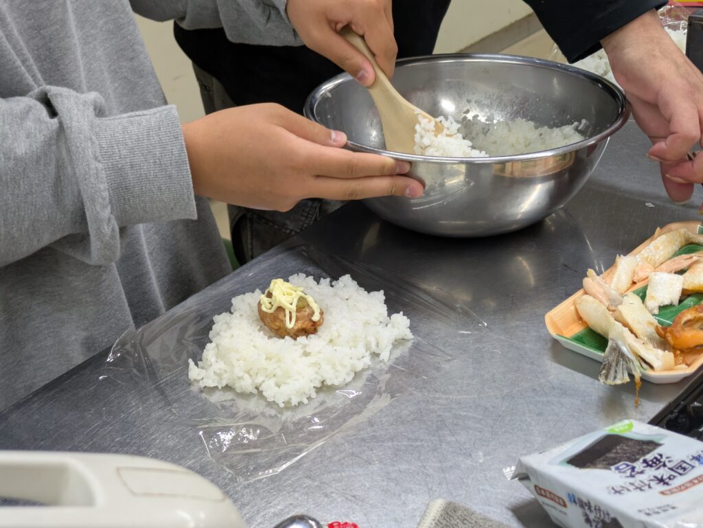調理実習でおにぎりを作りました!