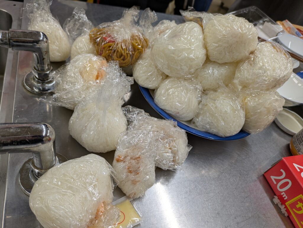 唐揚げマヨネーズや焼きそばなど個性豊かなおにぎりたちがたくさん出来上がりました😃